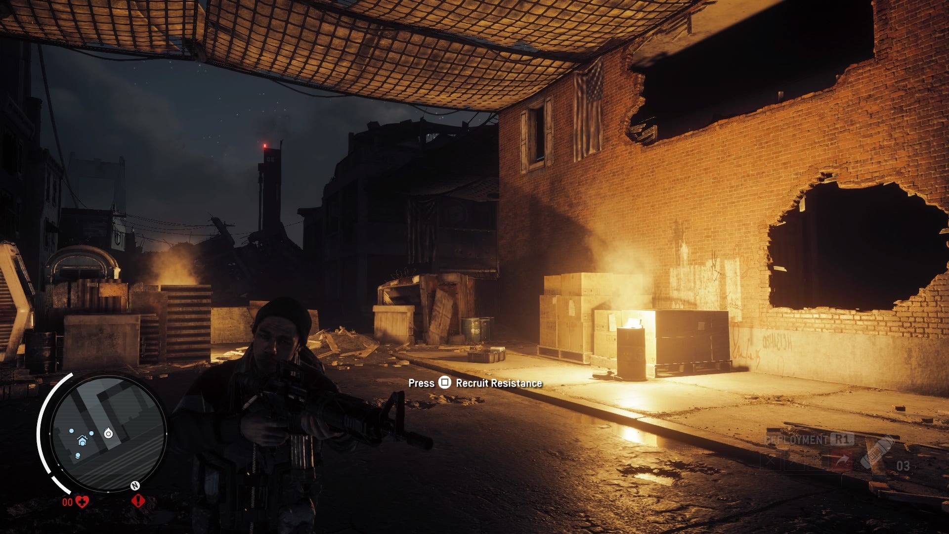 The game takes place in the ruined city of Philadelphia, four years after the occupation. The player takes the role of Ethan Brady, a hero who wants to fight back by igniting a revolution. His story plays out through a series of interconnected missions and activities that see him slowly build the roots of a resistance, and over time undermine the KPA's domination of Philadelphia's populace.