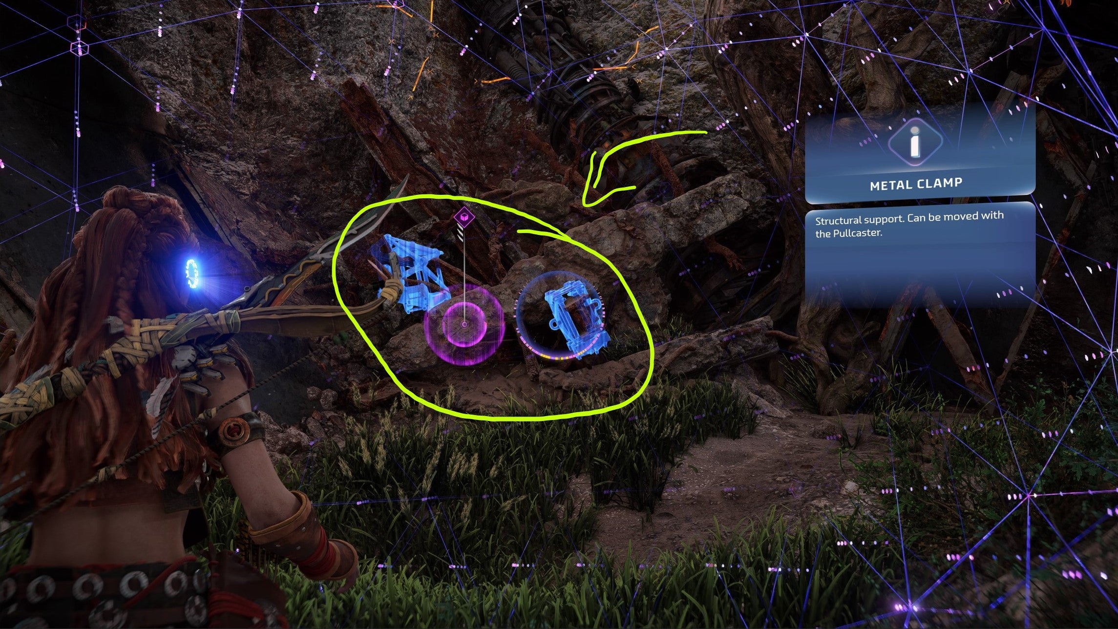 Use your Pullcaster to tear the clamps out of the collapsed rock to collect the item.