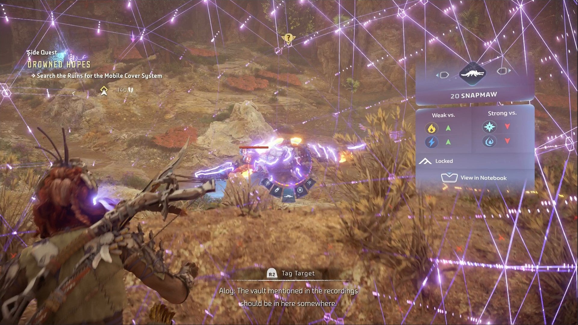 Focus on the Snapmaw first since it’s actually much easier, despite its size. If you stay up on the ridge overlooking the machines, you seem to be able to take them out at a distance without them locking onto you properly.