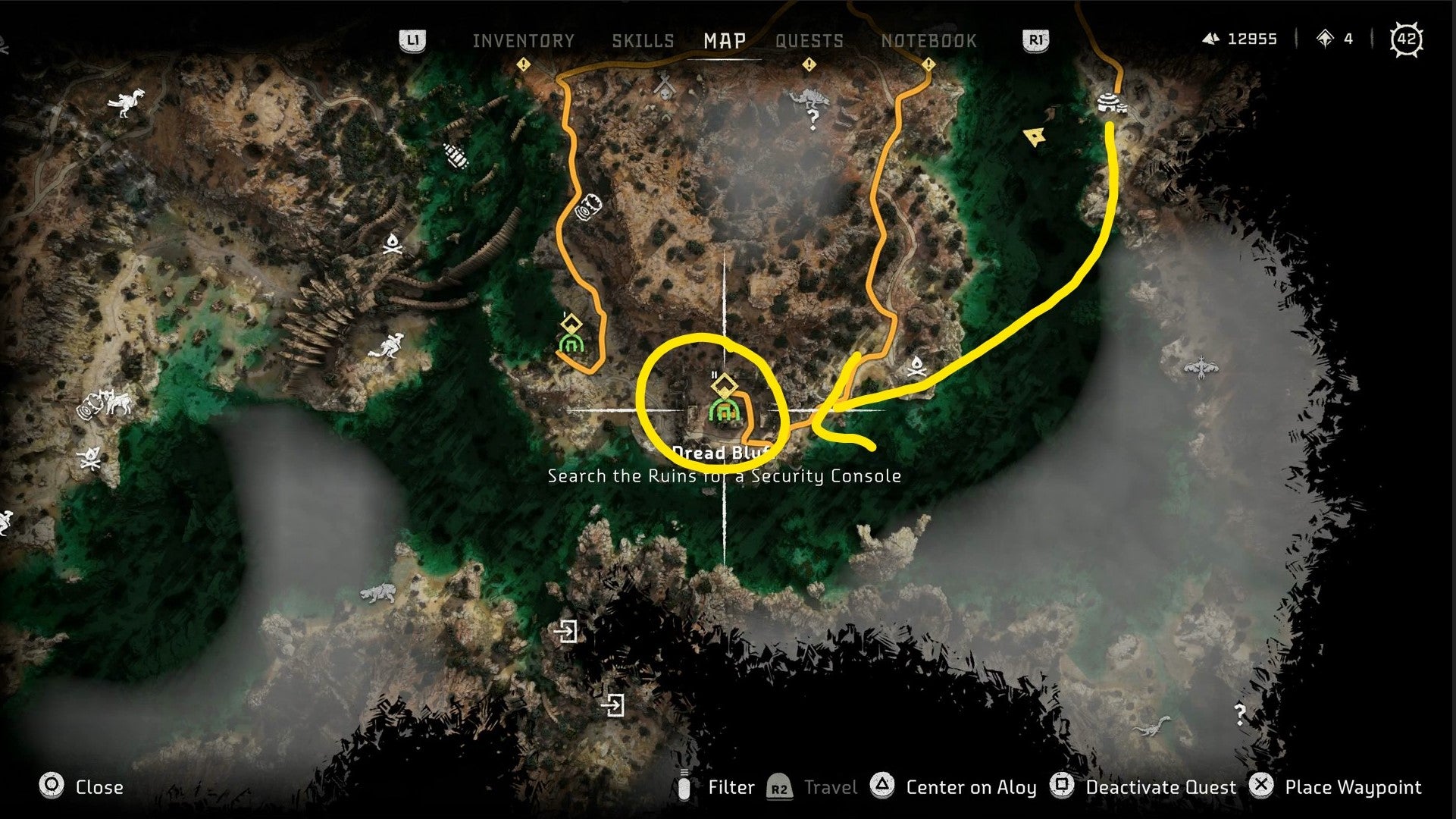 To get inside, look for a climbable building in the middle of Dread Bluff.