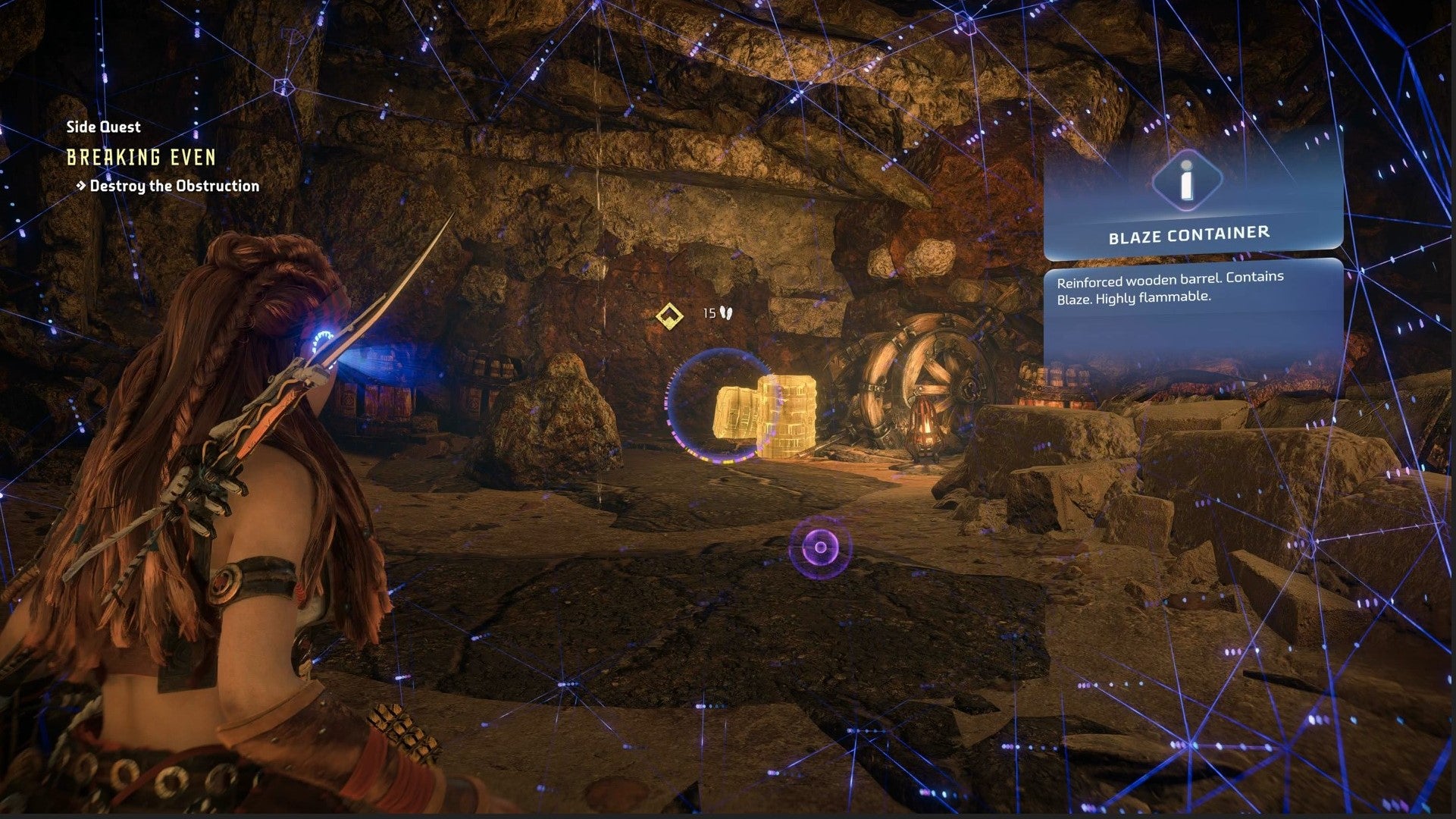 Breaking Even is a side quest in Horizon Forbidden West where Aloy uncovers the mystery of a cave-in at The Spinebreak, a tunnel between two areas of the tribe lands, and finds the door code to a cache of supplies.