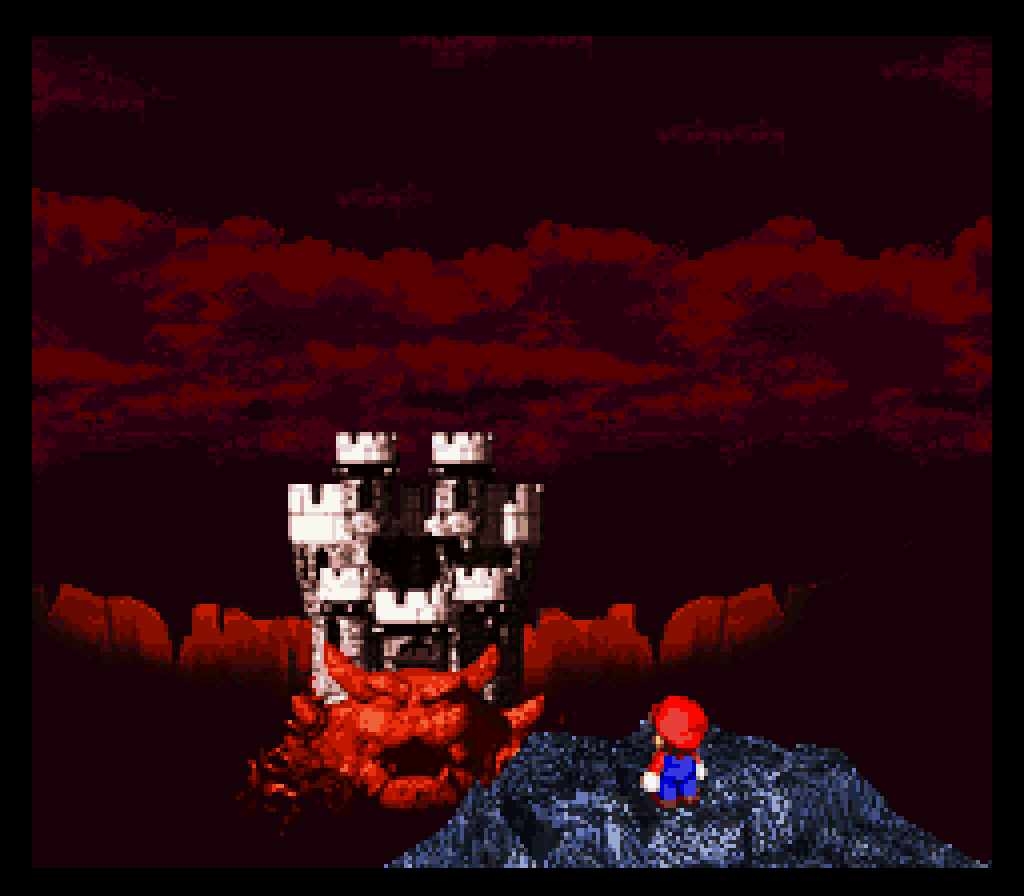 Unfortunately, Super Mario RPG came about during a particularly unfortunate period of time in which Nintendo wanted to compete with the polygon-pushing power of the PlayStation, but didn't have their new console ready just yet. So, Nintendo did the next best thing: they faked it. The phenomenal success of 1994's Donkey Kong Country proved a bit of disingenuousness could move millions of games, even if the advanced CGI graphics of Silicon Graphics workstations had to be reduced to the modern-day equivalent of an animated .gif to actually function within the limitations of a Super Nintendo. Super Mario RPG didn't just use this same pre-rendered style—it also went for an isometric perspective to sell the illusion of 3D further. The natural imperfections of a CRT-TV do much to smooth over the general garishness of Super Mario RPG's visuals, but they take some getting used to in our era of flawless HD.