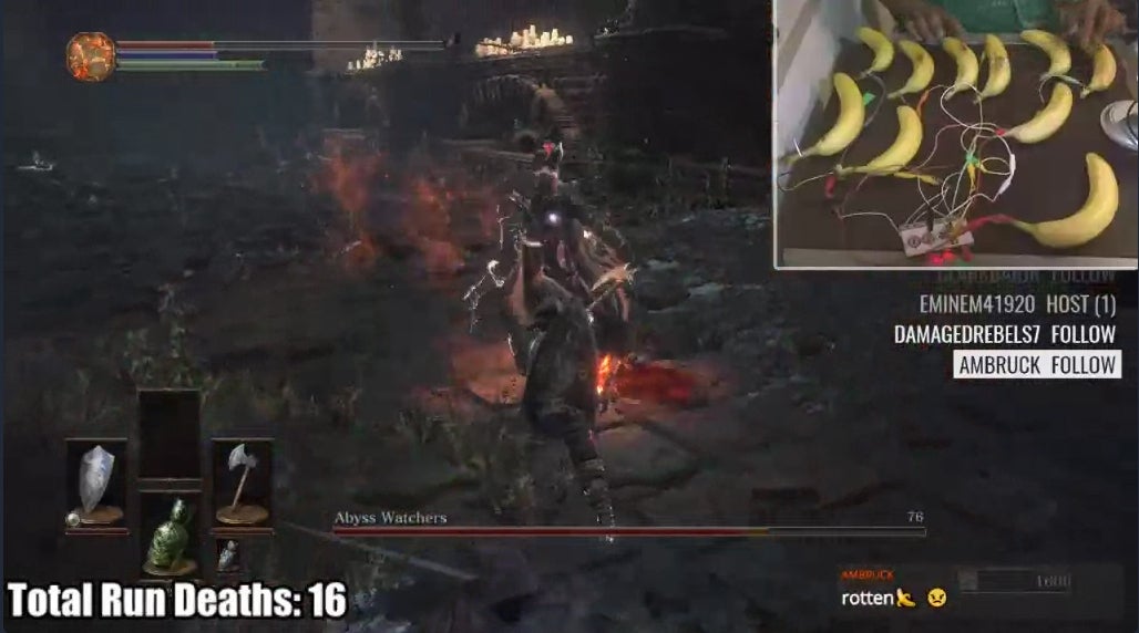 - As you can see above, the weird alternative controller arms race of Dark Souls 3 continues. First it was DK Drums; then it was the Mario Kart Racing Wheels, now it's literally bananas. I mean...