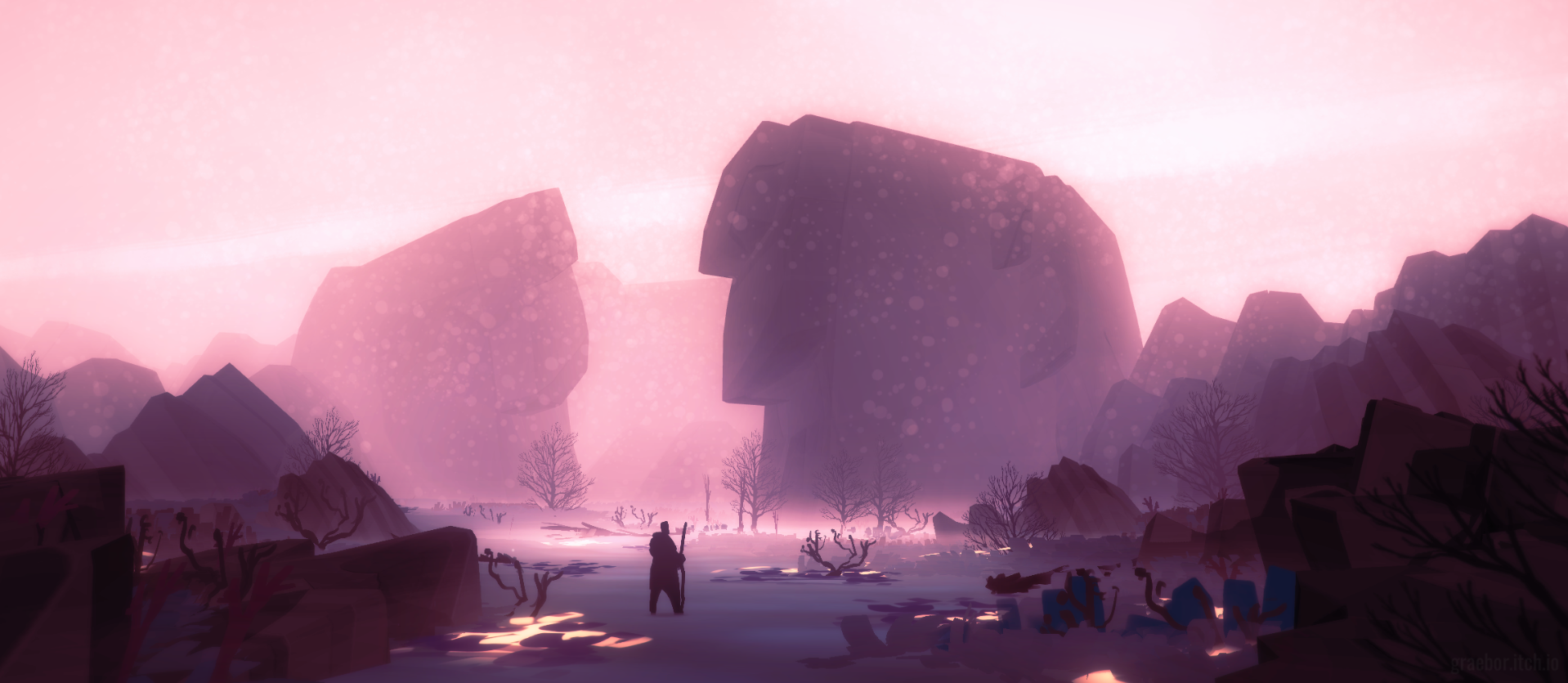 What's it like to walk within a piece of art? Seven Doorways, a game developed by Owlchemy Labs' Graeme Borland during the recent Slow Game Jam, may have a clue. Loosely based on Borland's own daily sketches of years past, in Seven Doorways, you direct a silhouetted figure as they walk across quiet desolate landscapes. Every scenario is differently entrancing, while your interactions with the environment are minimal (such as clicking on a glowing marker and thus instilling a mountain to rise).