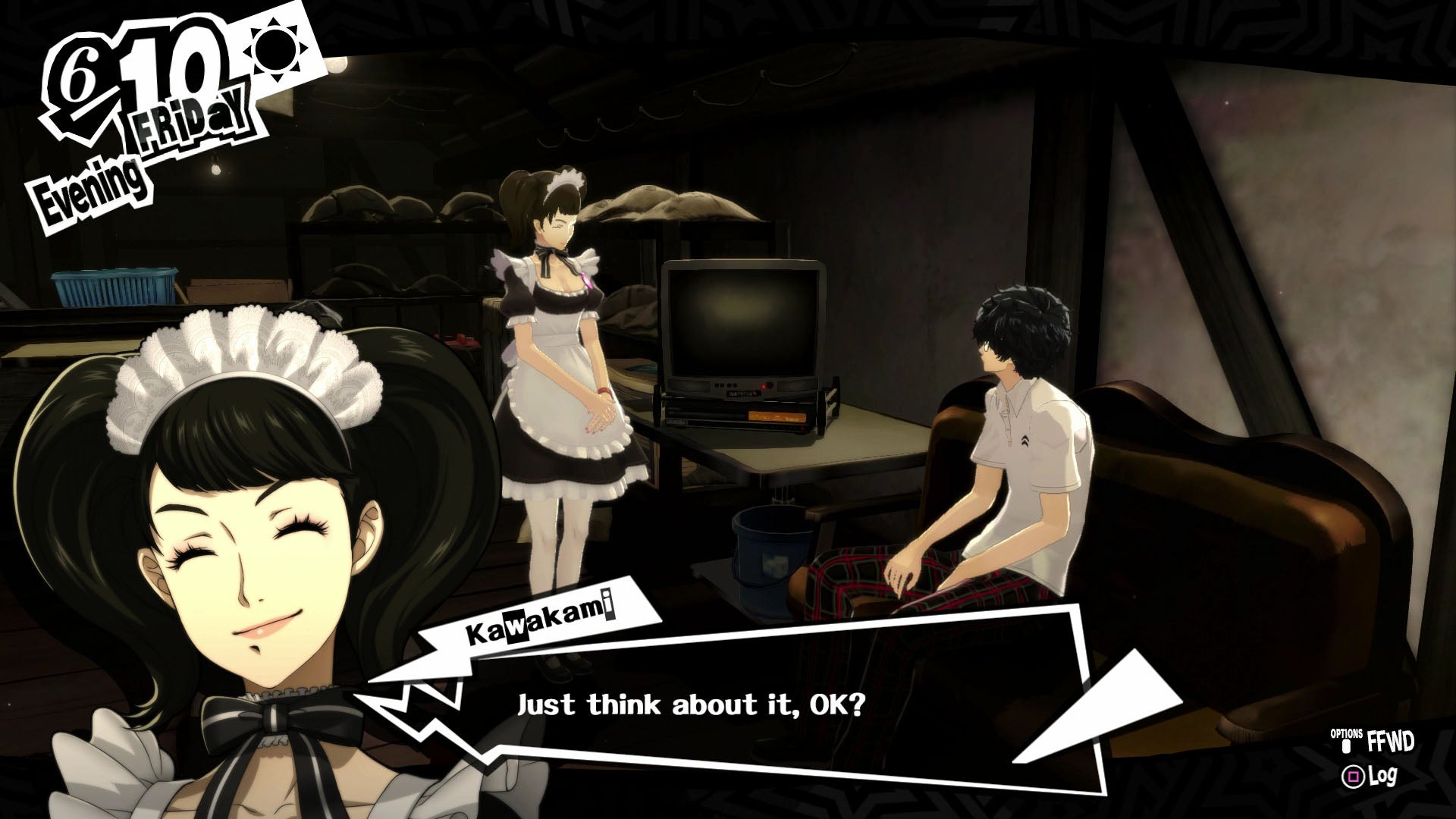As the protagonist’s Confidant rank with Kawakami grows, their relationship can take on an intimate tone. It’s even implied that Kawakami stays the night with him on Valentine’s Day. And maxing out her Confidant lets the player receive a “special massage” from her too, whenever they want. In exchange for her services, this lets the player do more activities after prowling the game’s dungeon roaming section during the day, as usually the protagonist is so tired they go straight to bed.