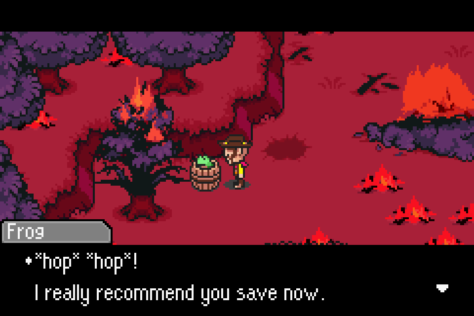 With so much drama surrounding its development, the whole "video game" aspect of Mother 3 often plays second fiddle to the theatrics surrounding its potential release. Simply having a new EarthBound game would be good enough for most fans, but luckily, Mother 3 is a great RPG—though one that makes some serious tonal shifts from its predecessor. While Mother 2 feels like a rambling, often improvisational tour of the world through the lens of Shigesato Itoi, Mother 3 takes a much more direct narrative approach. Overall, the story strives for a much darker, melancholy tone, and isn't shy about confronting the player with tragedy: Mother 3 opens with the loss of two important figures in the protagonist's life, and the remainder of the plot details the decline of a formerly peaceful world.