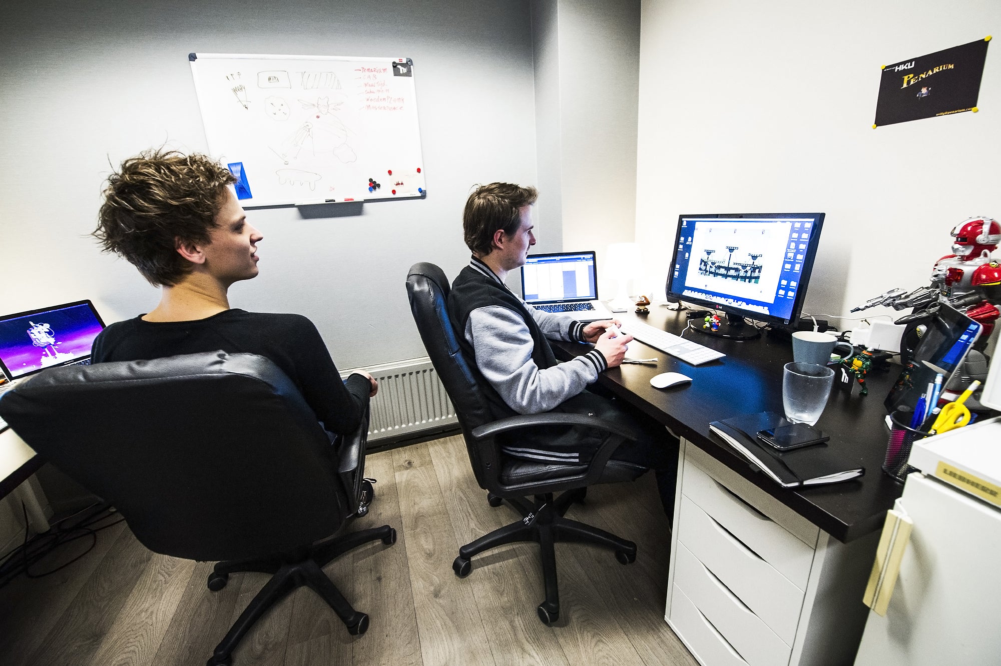 After sitting in that conference room talking for an hour and a half, our conversation ranging from the history of gaming in the Netherlands to the nuts and bolts of the program itself, it was time for the actual tour. The first stop was Ragesquid, developers of Action Henk, who were crammed into a small office brimming with clutter. As I came to discover, most of the offices at the Dutch Game Garden are like Ragesquid's, rooms barely bigger than a corner office crammed with people laboring over models and code, their walls covered in concept art and the odd movie poster.