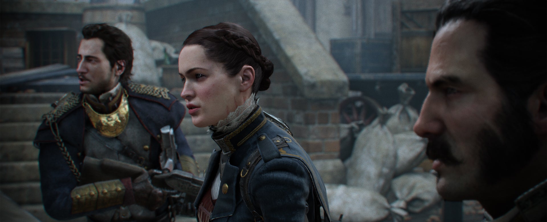 Within seconds of seeing The Order in action, the benefits of working alongside Sony exclusively on the PlayStation 4 are clear enough. It's a fine-looking game, and one of the first to show what's really possible with the new generation of consoles. As Galahad and LaFayette, two of the four heroes that make up The Order's eponymous posse, take to a Whitechapel roof, the city stretches out across a tangible smoky horizon. Like Crytek's Ryse, a film-like visual quality is favoured over searing fidelity -- which possibly explains its aim of running at 30fps over 60 -- with grain and occlusion lending the image an electric authenticity. The Order's love of cinema runs deeper than the surface, too.