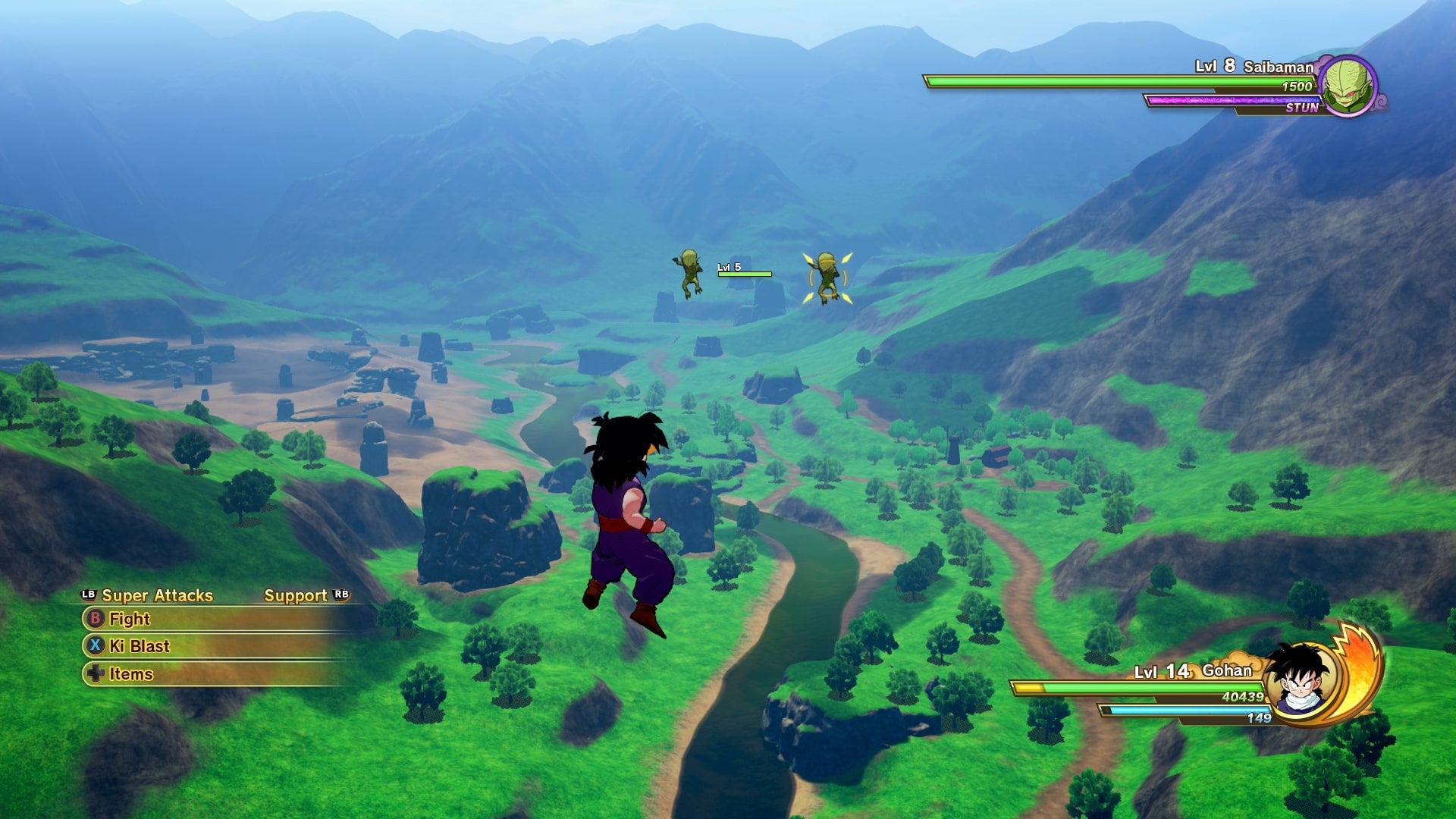You’ll only earn XP from battles and missions in DBZ Kakarot. This means that your best bet for farming XP is to fly around the open world taking down enemies. We recommend using the boost while flying around to close the gap faster. You’ll also want to make sure your Ki is recharged at all times, so that you can end fights quickly with Special Attacks. Do this by holding down triangle/Y in a fight. You’ll also need Ki in order to fly at high speeds.