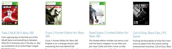 Head on over to the Microsoft Store to take advantage of a huge sale on Xbox 360 games and accessories. There are over 100 sale items to peruse, from family titles to bestsellers like Call of Duty: Black Ops 2 and Far Cry 3. Savings range from $10 to a whopping $45, so it's well worth clicking through all seven pages. There's even a couple of PC games in there.
