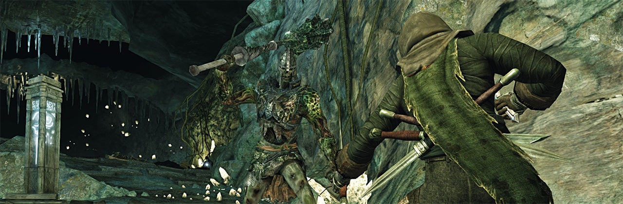Enemies hit hard, and rarely stagger. The three different types of humanoid foes in Crown of the Sunken King (which come in mace, sword, and lance form) can't be staggered and disposed of as easily as other Souls 2 enemies. Even with my strength-focused character, it takes four hits with my Drangleic Sword to make one of these enemies stumble—and by that point, I'm usually too drained of stamina to do anything. Since these guys are absolutely everywhere, the key to success in Crown of the Sunken King is luring them out one at a time, though that's easier said than done. This area specializes in bottomless pits and narrow walkways, making anything greater than one-on-one combat a harrowing experience.
