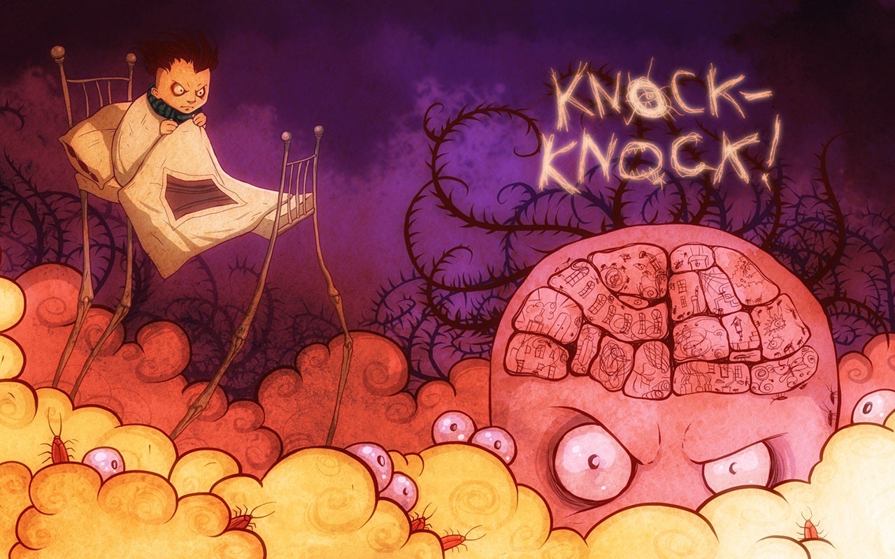 The Guests in Knock Knock certainly play to those anxieties. In the gloom, they're all disproportional limbs and staring eyes, bit and pieces cut out from an asylum's nightmare. Never pointedly menacing. Just .. wrong. Even switching on the lights, which immediately banishes any Guest within the room, isn't enough to make things better because there's the understanding that, some point, the electrical fixtures will give out and the night will always, always return.