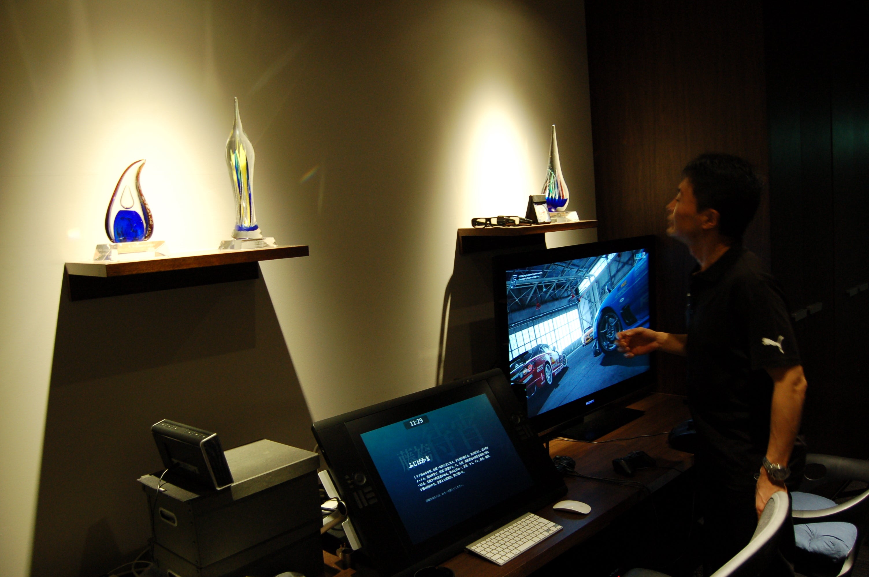 Polyphony's trophy cabinet is bulging. The best part of the display is probably Yamauchi's crash helmet, though -- a reminder of his racing career, which has been bubbling along in the background in recent years.