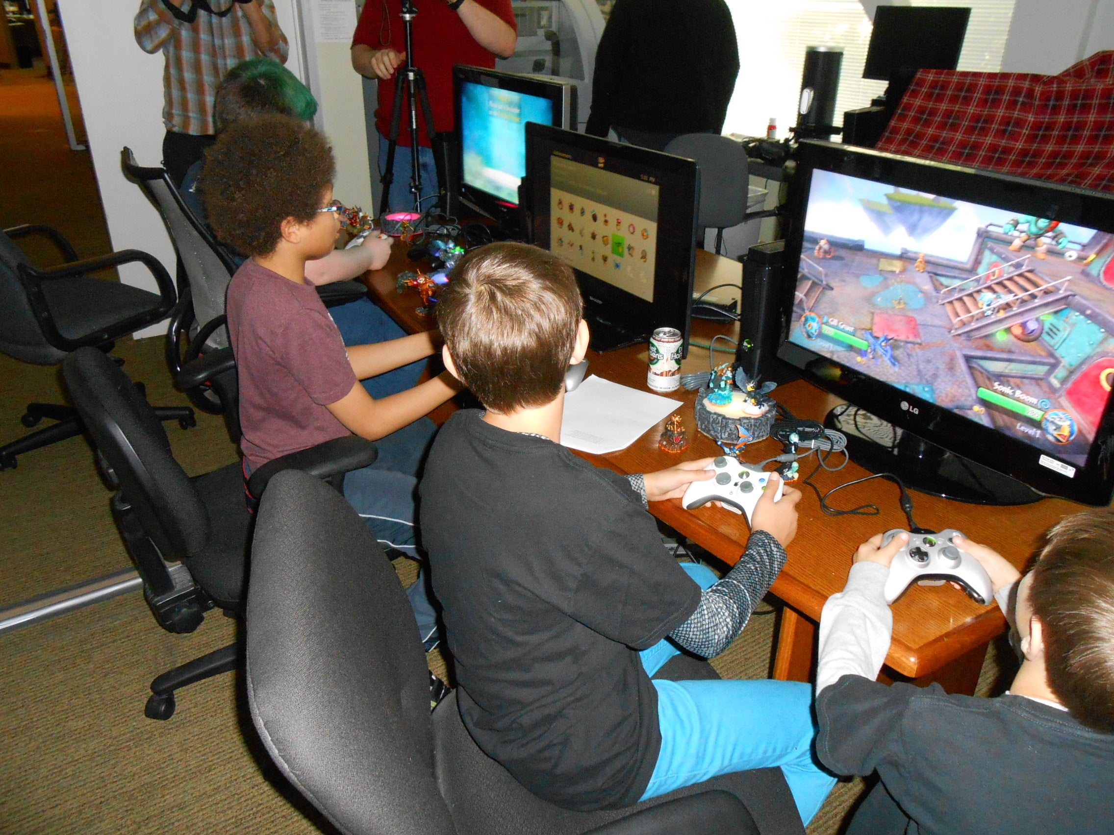Their amazement at being behind the scenes is infectious. It's easy to get so hung up on reporting and reviewing games that we forget just how passionate kids can be about these things. To them, Skylanders isn't just a product to be coolly studied and dissected. It's the coolest thing on Earth, something to immerse yourself in. I feel sadly nostalgic watching them. This, I realise, is how I would have felt if I'd visited LucasFilm or the Marvel bullpen in the 1980s.