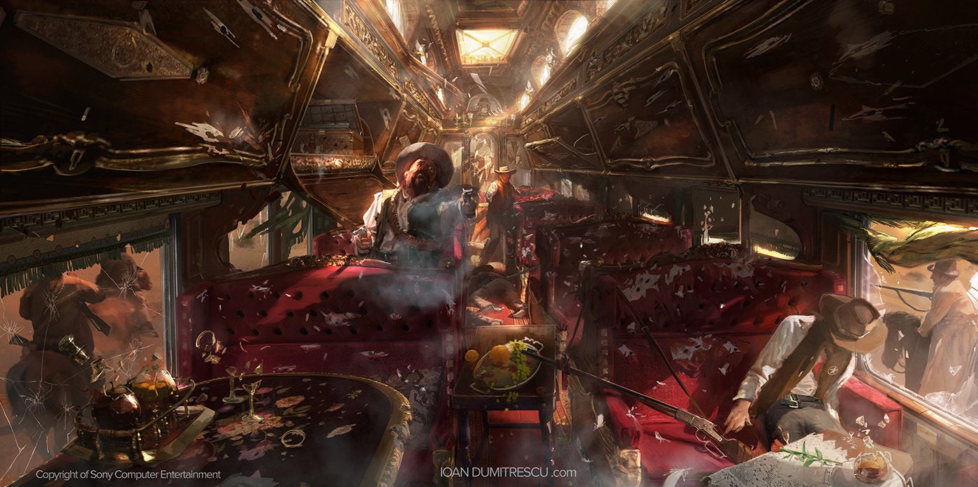 The three images are over on his Artstation page, and appear to be for a first-person shooter set in the wild west.