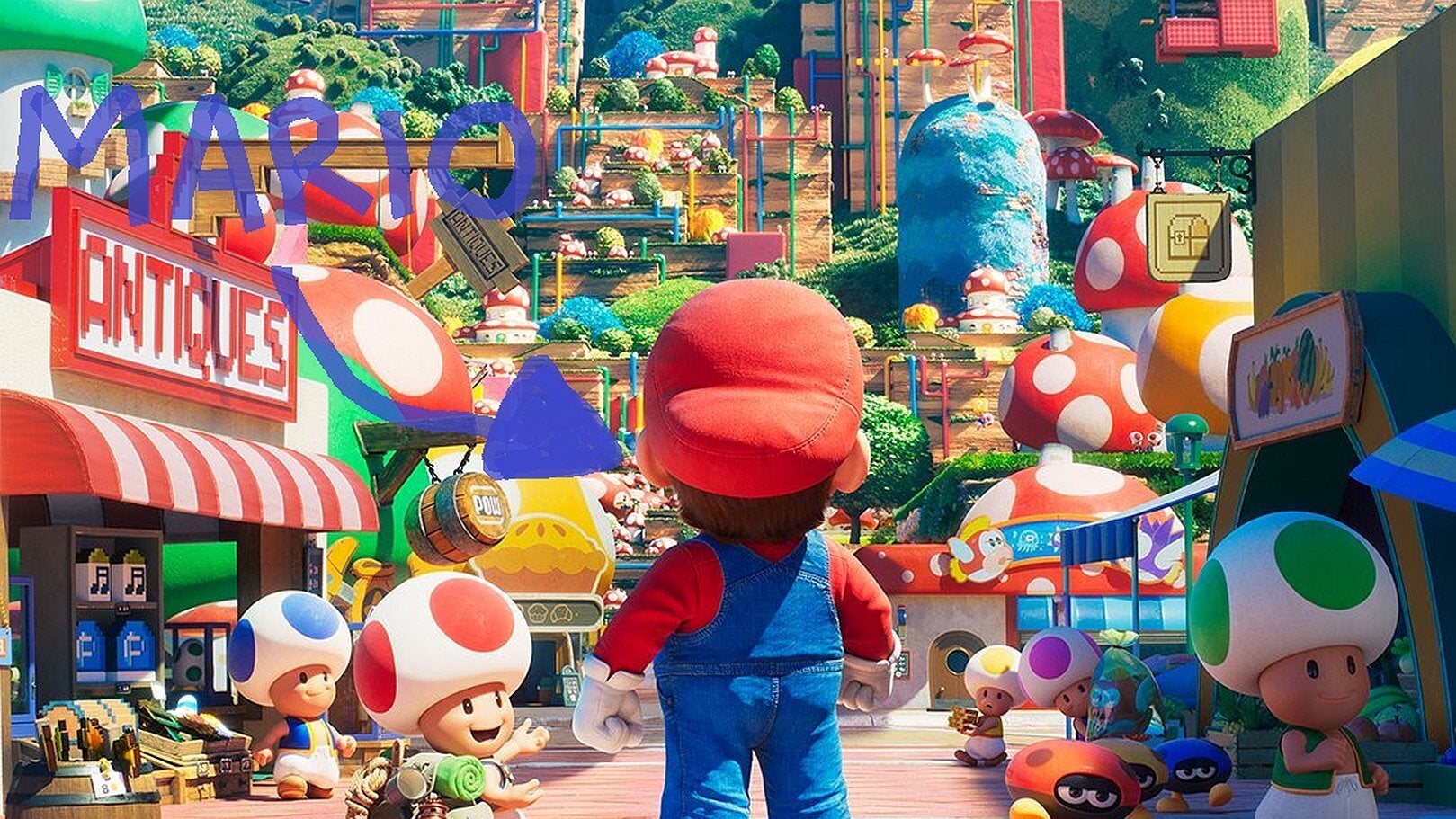 Take a look at that antiques shop. Nice and close, now. Peek next to the more expected goods, and you’ll clock that iconic egg; white, with little coloured splotches. It’s blue, just behind blue shopkeeper Toad. It’s undeniably the egg of long-time Mario workhorse Yoshi, right? So we can expect to see the glue-tongued little mount at some point in the film, we expect. It stands to reason; Nathan Drake gets a jeep, Mario gets a Yoshi. There’s almost certainly going to be a bit over the course of these mushroom-centric 90 minutes where Mario has a chase scene. Probably against Bowser. And maybe it takes place over the Kalimari Desert from Mario Kart 64, the course with a train, and Yoshi (Mario’s car) has to run and keep up with- ach, you get the idea.