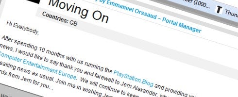 He went on to add: "As many of you know I was a blogger at Joystiq before I came here. I love games (I think that’s obvious), and I love talking, reading and writing about them. Although I’m moving on from the PlayStation.Blog, I won’t be moving on from that interest and I’m sure you’ll see me around."