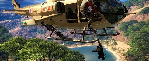 Just Cause 2 has a Bionic Commando-style grappling hook, as seen in the video after the break.