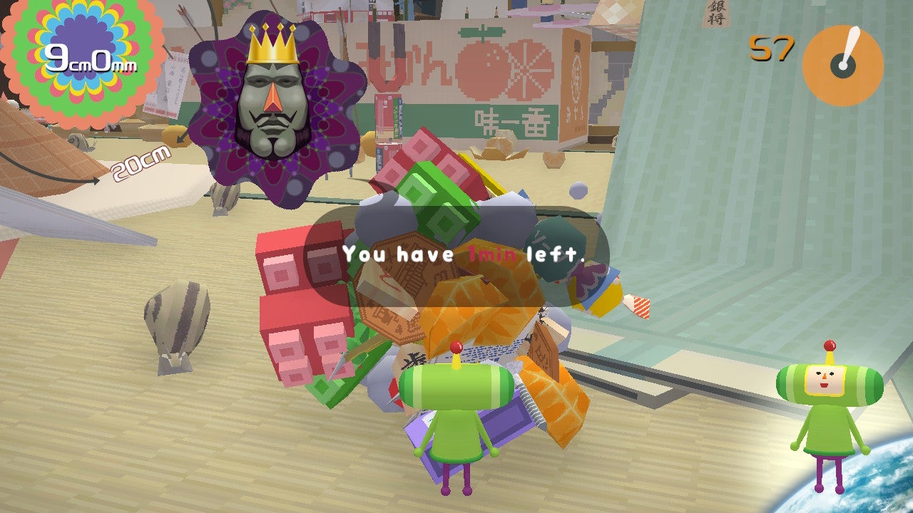 If you're unfamiliar with Katamari, the game's premise is simple and immensely satisfying. You play as the Dashing Prince who has an adhesive Katamari ball. You roll it around to make everything it touches stick. Levels are cleared once you have a large enough (or larger) object around the ball by the end.