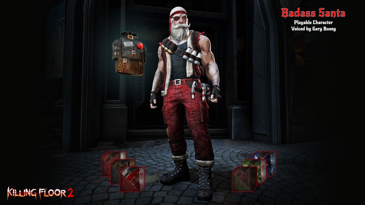 Available today, the Killing Floor 2: Twisted Christmas: Season's Beating content adds new maps, weapons, zeds dressed as Christmas elves, and the playable Badass Santa. The character is purchasable and voiced by Gary Busey.