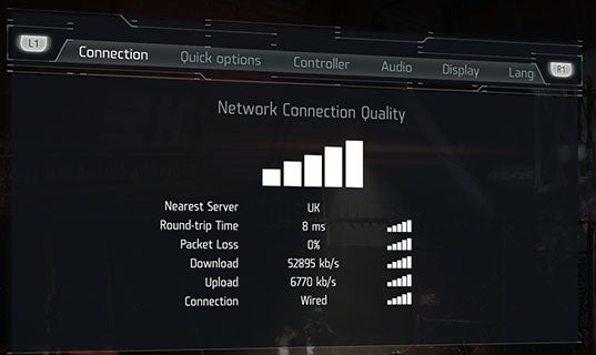 Each of these categories will get a quality score ranging from 0 to 5 bars. The lowest score is shown as the main ‘Connection Quality’ score and is also displayed on the score board and in the main multiplayer menu.