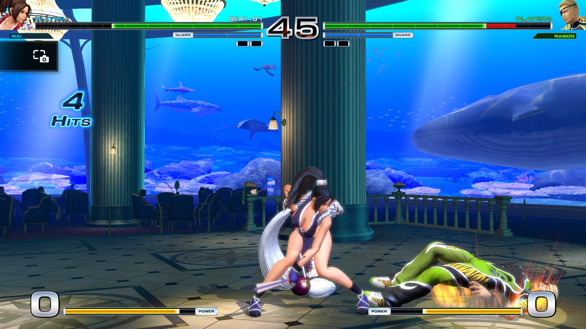 I would've charged SNK with playing it too safe if it wasn't for the new cast members, all of whom are rather enjoyable and instantly endearing. There's the kick ass Shun'Ei, a disciple of returning Fatal Fury character Tung Fu Rue who uses spectral glowing hands to fight and his perennially-sleepy teammate Meitenkun. The Mexico Team features lithe grappler Ramon, while the Women Fighters Team adds Fatal Fury fan/fanservice character Alice. Geese Howard's South Town team has Hein, a stoic butler with moves based on the game of chess, and mainstay villains Chang and Choi are joined by whatever the hell Xanadu is supposed to be.