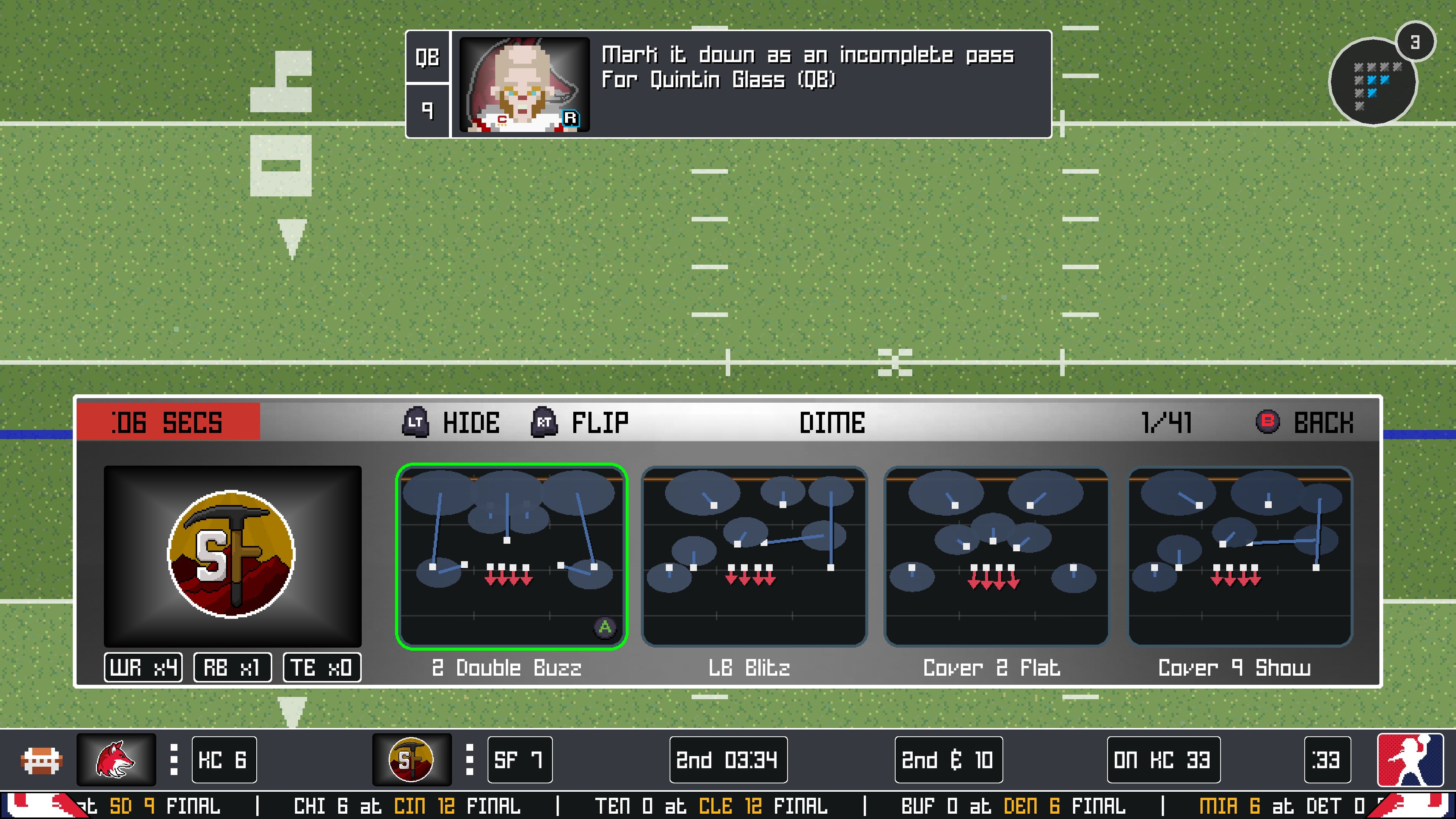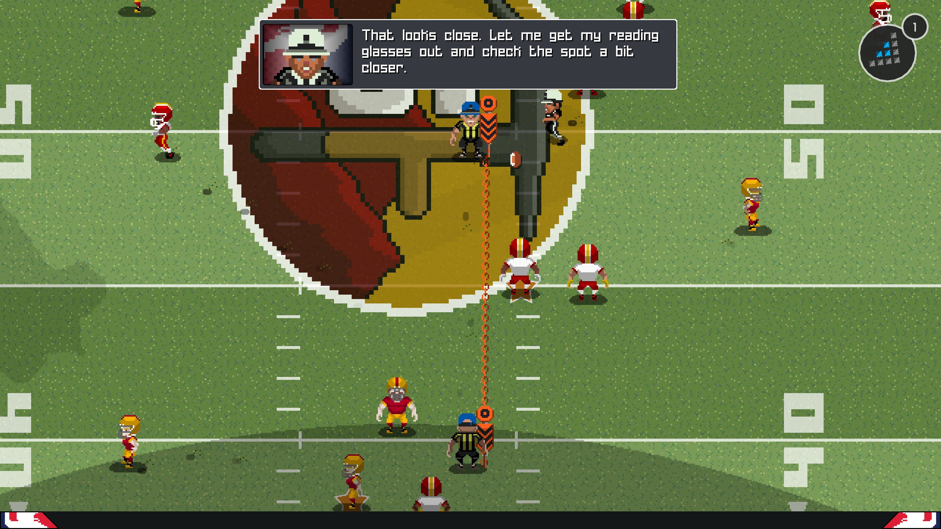 This sort of thing is what you expect from a po-faced hyper-hardcore simulation game where every pore on the dead-eyed face of the starring quarterback has been exquisitely 3D modelled, not a fun pixel art football game. Little things, like the muffled sound of the stadium announcer reminding what down it is and the snippets of flavor music played to the stadium between plays, make it feel like you’re really at a game. Games like this usually don’t have ‘proper’ clock management, but this does, and it makes the whole process of setting up for a play feel even more important. It all feels remarkably authentic, and captures the ‘feel’ of American Football brilliantly.
