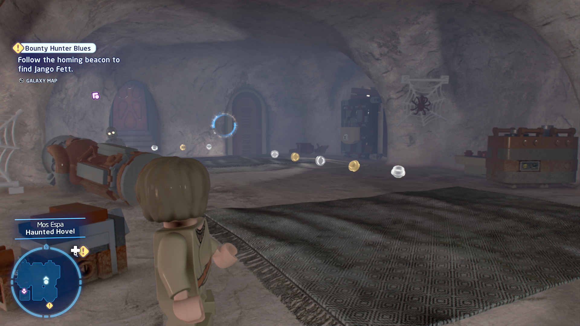 As Episode 1 of The Skywalker Saga comes to a close, and Anakin celebrates his podracing victory, you’ll return to the area of Mos Espa and catch a glimpse of Nobot. He’ll run into the house in the Slave Quarters that is beside Anakin's house, wielding a Kyber Brick; follow him, and you’ll see what I mean when I refer to him as a ‘dark droid’.