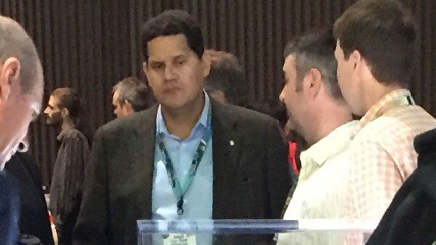An enlarged crop of a wider shot, the photo shows Nintendo of America boss Reggie Fils-Aime, who generally comes across as a cheerful, enthusiastic fellow.