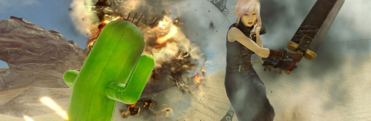 Where FFXIII felt like a game bolted onto a movie at the last second, with over-engineered systems seemingly designed to obfuscate the fact that the whole thing seriously lacked substance, Lightning Returns suffers the opposite problem: It gives the impression that no idea was considered too weird or ridiculous to be included, and that the developers refused to throw away a single concept that came up during planning sessions. How else do you explain the fact that your quest to save the world from annihilation has you fighting in a coliseum to win a pretty dress so you can commit arson with fireworks? Why else would you spend several hours hunting for chocobo medicine while people treat a giant bird as a holy herald of Valhalla with a totally straight face? If you want, Lightning can dress up as Lara Croft or wear a dress made of stuffed Moogles. Apparently a great many things stuck to the wall while this game was under construction.