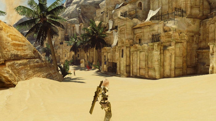 There's a certain charming clunkiness about the world that Jeremy's already touched on, but despite the number of NPCs who inexplicably break into high-speed runs, stare at walls and fall off things in unintentionally amusing manners, there's a real sense of life and place about Lightning Returns' locales that simply wasn't present in the original FFXIII in particular; although I'm one of the few people who actually liked that game, I constantly felt disconnected from the world and found it difficult to visualize how different areas related to one another geographically. I've had no such issue with Lightning Returns, which, although working with an engine that's clearly struggling to realize its creators' ambitions, does a much better job with building a coherent, interesting world to explore.