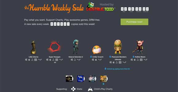 Pay $6 or more to receive Critter Crunch, Hotline Miami and PixelJunk Monsters Ultimate - that last one also comes with a soundtrack.