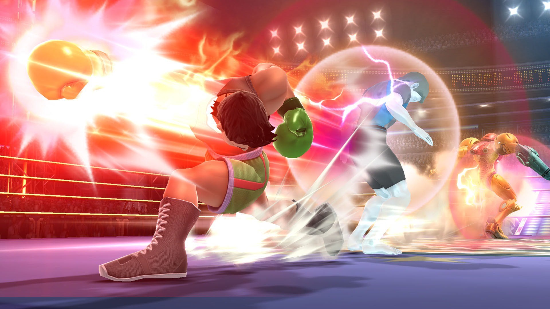 Little Mac does his best to Punch Out!! Samus in Super Smash Bros.