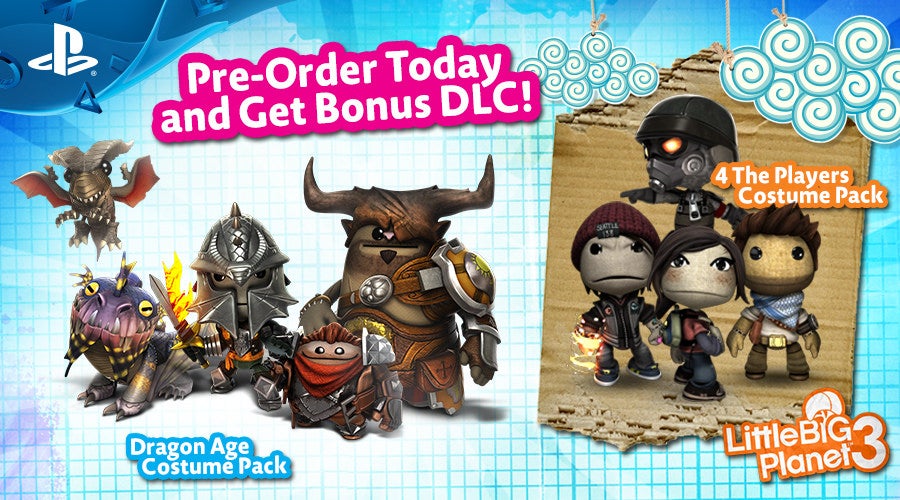 A Dragon Age: Inquisition Costume Pack will also be part of the Day One Edition for all who pre-order LittleBigPlanet 3 on PS4, from any retailer or digitally. The pack, available at launch while supplies last, will equip your sack critters with the Dragon Age threads.