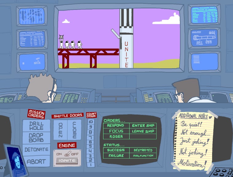 Second Chance is a puzzle game, I suppose. It's also quite possibly an all-too-short point & click adventure of same variety. Regardless of what you might call it, one thing's certain: Second Chance is hilarious. As the head honcho over at Ground Control, you're responsible for ensuring the survival of a team of astronauts as they blast off into space, a giant explosive in tow, in an attempt to stop an asteroid from obliterating all terrestrial life. Their target? No pressure.