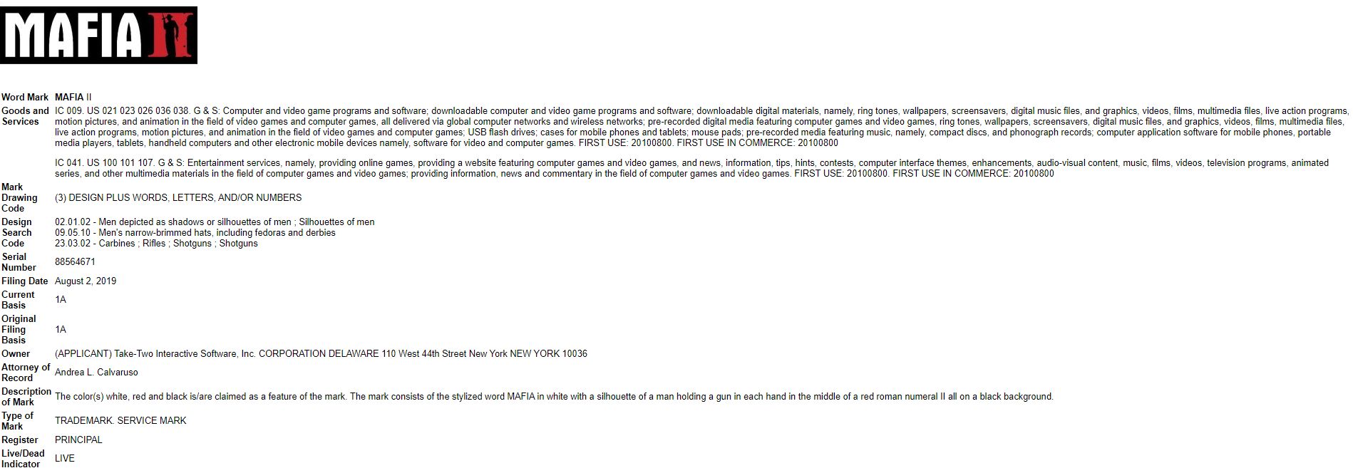 It's worth noting Take-Two and 2K Games could just be renewing the Mafia 2 trademark, which tends to happen from time to time; therefore, don't get too worked up over the prospect of a remaster. The MAFIA trademark on the other hand, sounds promising, but again, don't get excited just yet.