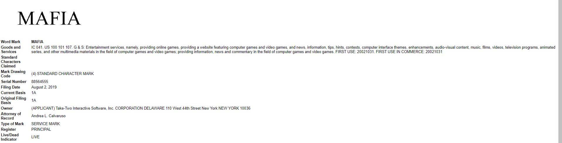 Mafia 2 and MAFIA trademarks have surfaced which could mean more Mafia in our lives.