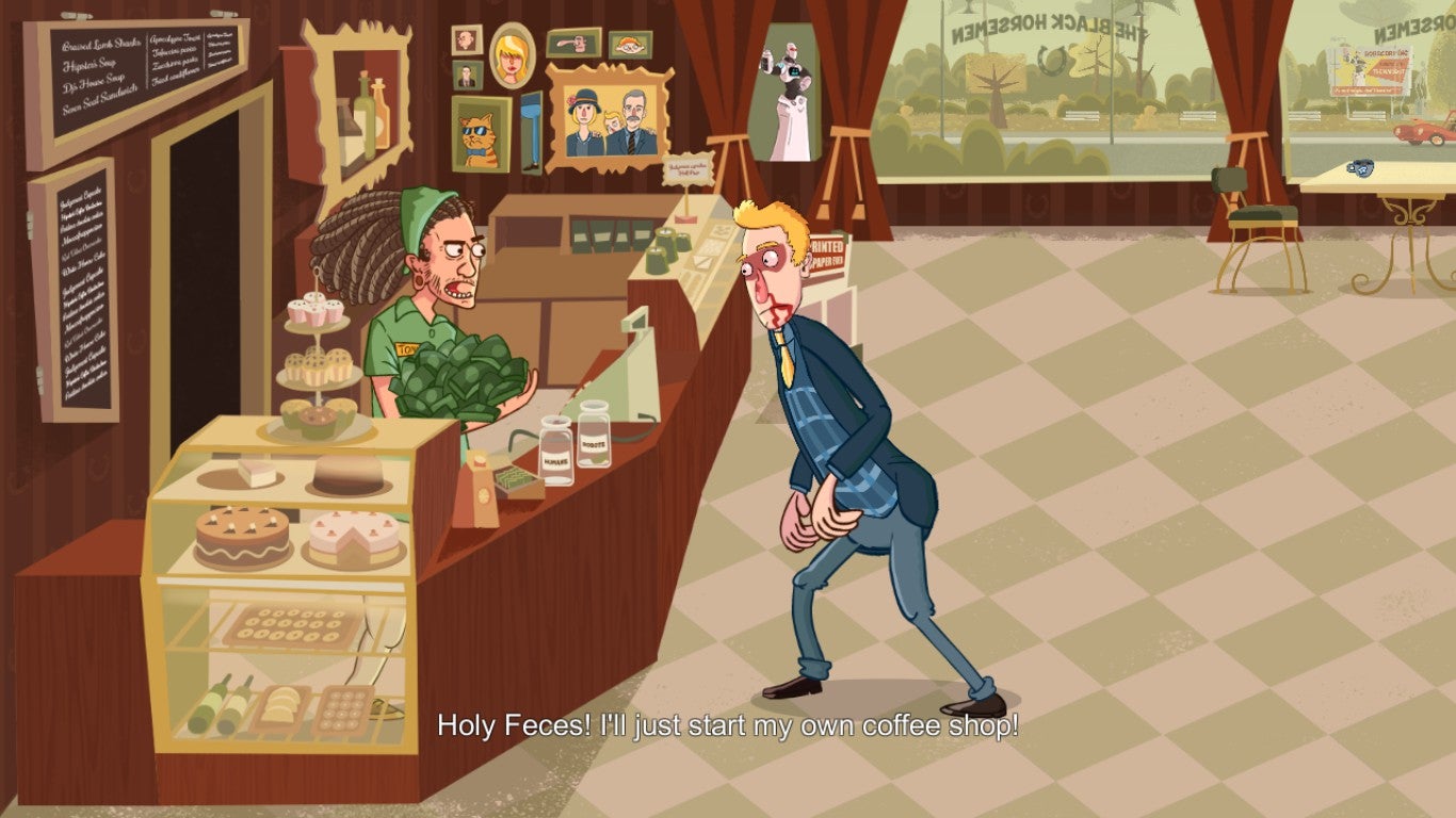 The game stars the eponymous Samuel, a fabulously wealthy fellow who apparently has it all. However, he's a particularly selfish and thoughtless individual who's never had to do an honest day's work in his life. We catch up with him at the start of the game while he's sitting in a coffee shop with his girlfriend. She's not very happy: He's forgotten her birthday – for the third year in a row. Fed up, she smacks him around the chops and storms out of the café and across the road. Samuel follows her, but forgets to look both ways and gets hit and killed by a septic tank truck.