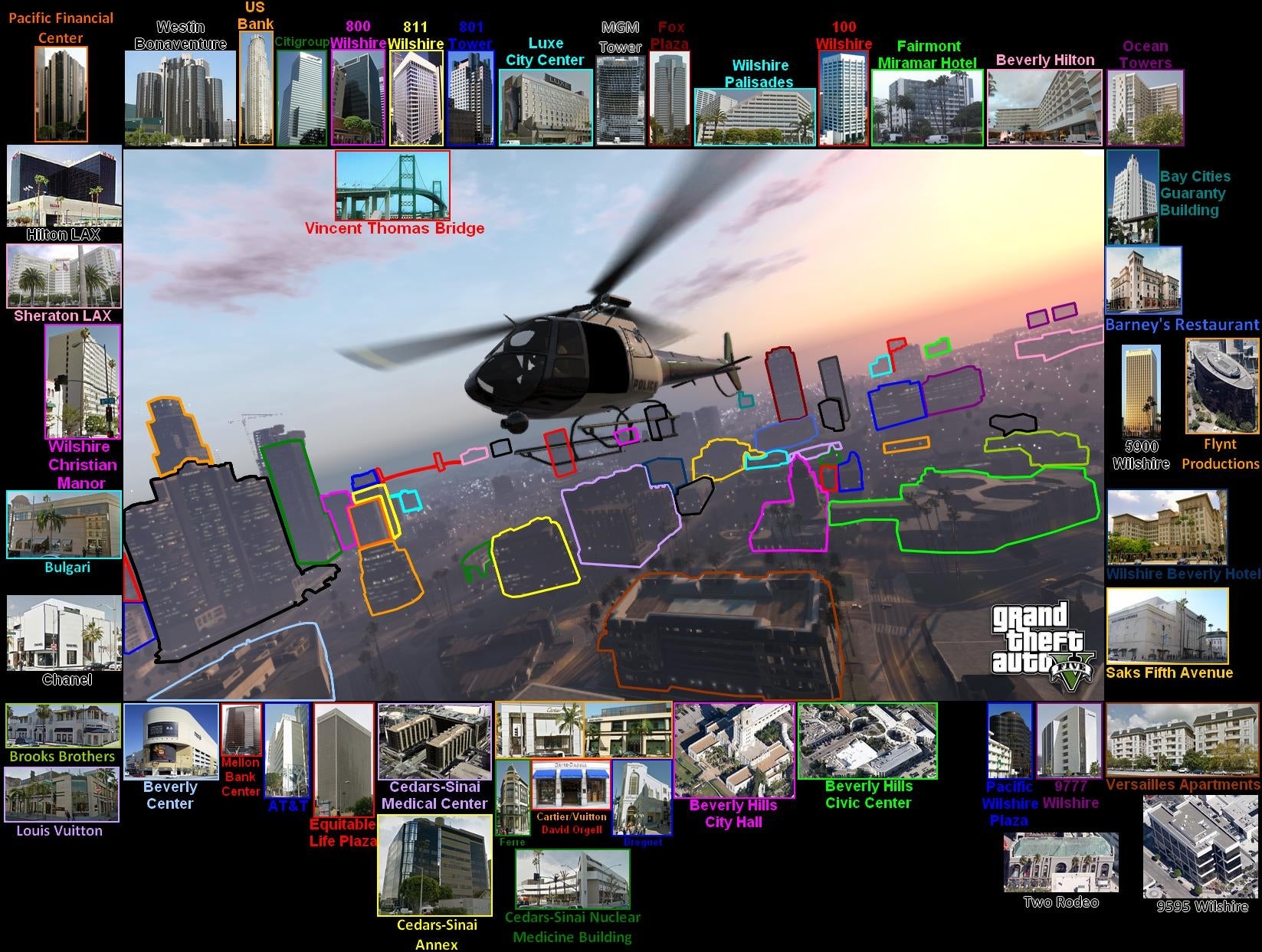 The real-life LA gave the map-makers a sense of where Los Santos' major geographical features should be, how its districts should connect. It was infinitely more useful than Grand Theft Auto: San Andreas' take on the city, which bears about as much similarity to its current gen incarnation as GTA 3's Liberty City. But, even though the fans now had a rough idea of what their finished map should look like: they still had to take each screenshot and figure out what part of the city it depicted. Looks weren't enough to go on, here. They needed something concrete -- some indisputable points of connection between the real-world and the one Rockstar had created.