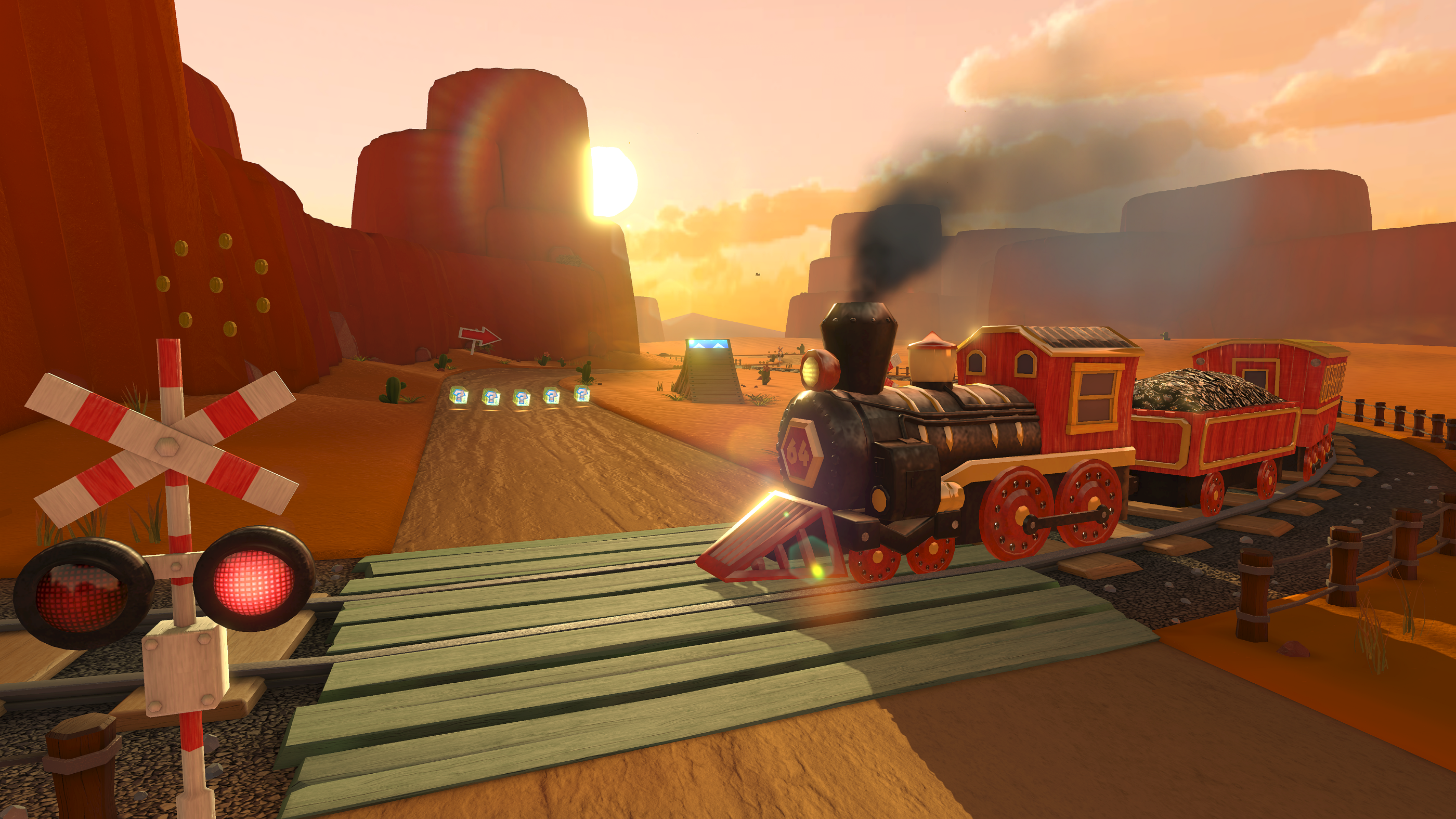 There's also the N64 Kalimari Desert course which features frequent run-ins with a steam locomotive that crosses your path, and the previously mentioned Waluigi Pinball course that tasks you with bumping and weaving across the giant pinball table-inspired track.