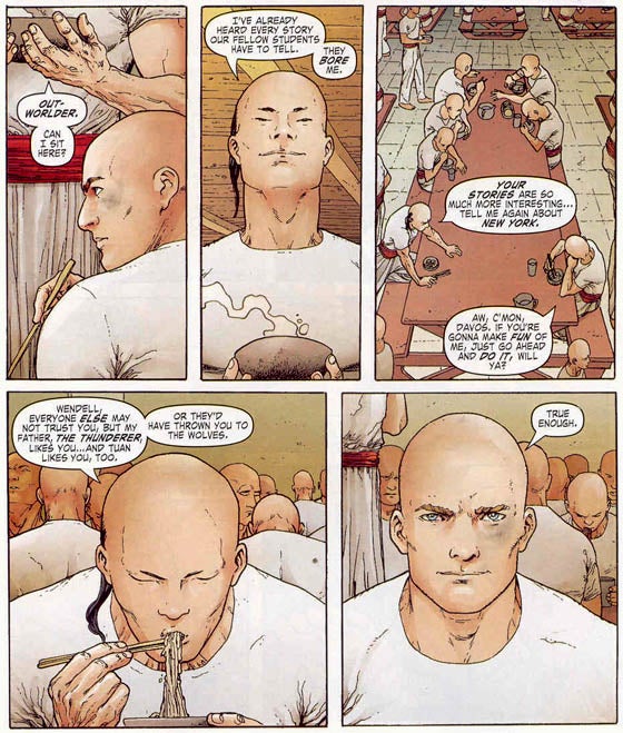 Likewise, Danny Rand's origin as Iron Fist only requires him to be an outsider from K'un L'un. He simply has to stand out in their culture, to lack their customs. You can achieve that point as an Asian-American, African-American, Latino, or any other race. For the people of K'un L'un the important part is that Danny Rand is the Outworlder and even that's only obliquely touched upon in the comics themselves. His nemesis Davos is angry that a non-resident of K'un L'un takes the spot, not that Danny is white. Everything else in his origin is a story of revenge or discovery, one that doesn't particularly rely on his skin color. (It probably doesn't help, that Davos - who is from K'un L'un - was straight up portrayed as a white guy in early Iron Fist comics.)