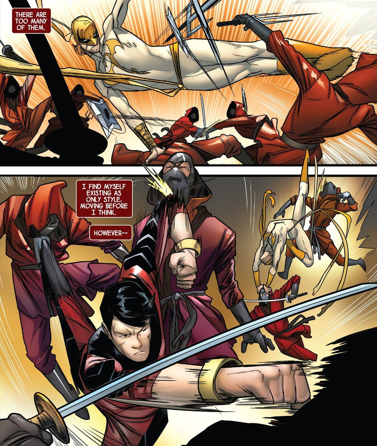 The second contention is true on the surface. Danny Rand, like his immediate predecessor, is a white guy who goes to a mostly-Asian mystical city, rises to the top in training, and ultimately becomes that city's champion. People should note however, that Danny Rand is horribly bad at the job, as was his white predecessor. He knows little of his heritage or history, he's generally taken as worse than Shang Chi in martial arts, and as an Immortal Champion of one of the Seven Cities, he's far out of his depth.