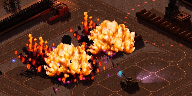It's not a stealth game, but there are ways to get your best foot forward before the enemy forces see or hear you. He revealed that being smart in how you approach this force coming at you head-on is actually where the name Matador comes from. You're the red rag; they're the bulls, essentially. That's important, because players can be clever enough to get enemy vehicles bogged-down in mud traps, stun them with smoke launchers and EMPs, or launch high-flying shells, only to hide before they come back down to earth. Deciding the best course of action under duress will be the key to surviving each district. Throw in custom Steam Workshop maps and you're going to have no end of challenges to contend with.