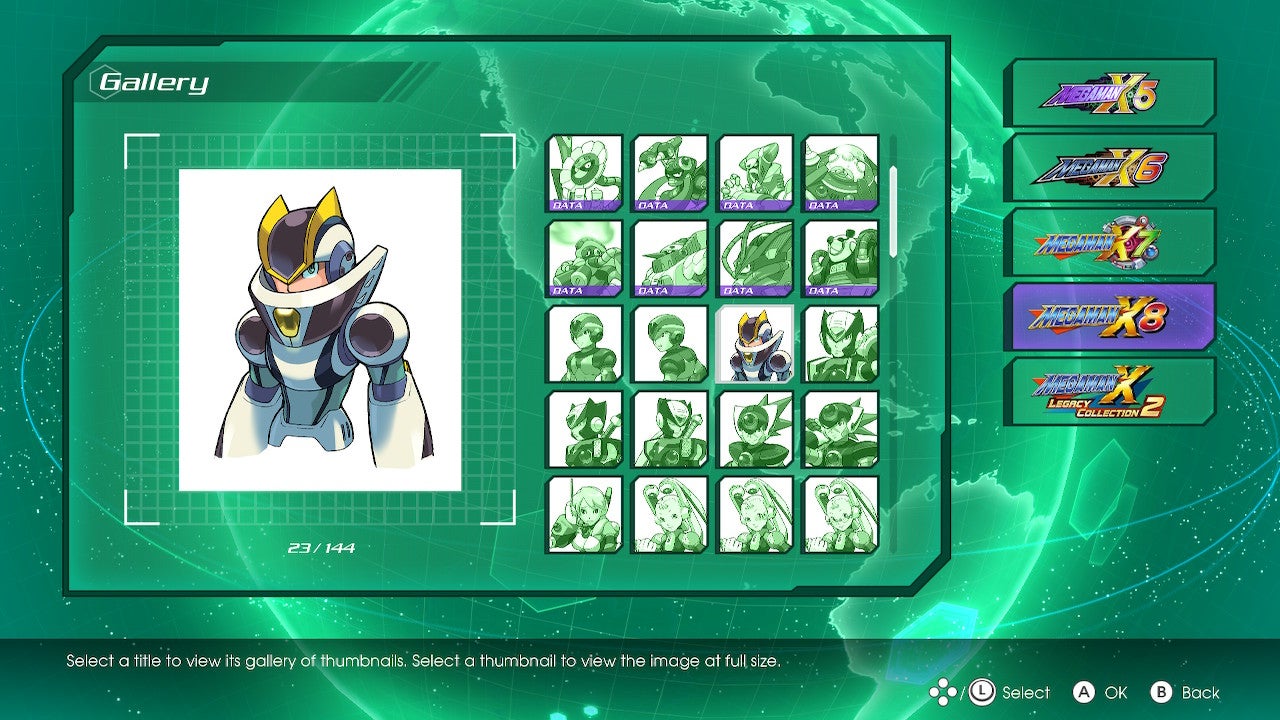 Every game is presented in its original release form. You can play all of the games in their English or Japanese releases; Mega Man X7 expands that to English (US), English (UK), Japanese, French, Italian, German, and Spanish versions; and Mega Man X8 adds a Chinese version to that list. There are options for English, French, Italian, German, Spanish, Chinese, and Japanese in the Legacy Collection menu themselves, but that doesn't extend to the in-game text or voice acting.