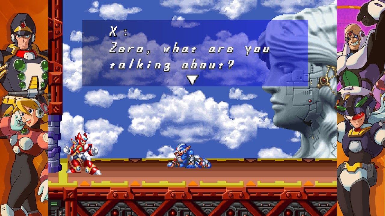 But if you're new to the Mega Man X series—and I imagine a lot of you are as it's been (oh gosh) 14 years since we've seen a new X game—I whole-heartedly recommend the first volume of Mega Man X Legacy Collection. It gives you access to the best of X, plus the bonus content and perks are almost identical across the two volumes (the challenge mode that pits you against two Maverick bosses at a time vary slightly between versions). The "Rookie Hunter" mode lets you absorb twice as much damage from bad guys, which is a big help if you're trying to find your footing. If the first volume of Mega Man X Legacy Collection leaves you craving more X, go ahead and pick up the second volume. X5 and X8 are good games, and you might even appreciate what Capcom was trying to do with X7's weird hybrid style. Just spare yourself some agony up-front and switch to the Japanese voices.