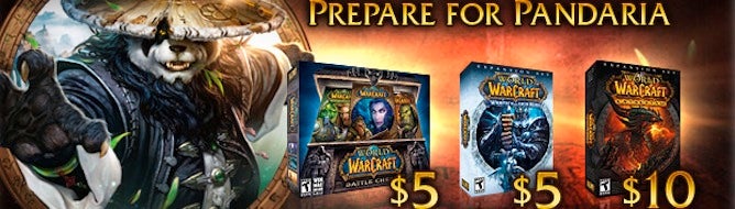 Mists of Pandaria arrives in late September, so get prepared now by snapping up the rest of World of Warcraft's content for next to nothing. Blizzard is throwing a 75% off sale to celebrate the impending expansion, with the Battle Chest (base game and Burning Crusade) for $5, Wrath of the Lich King for $5, and Cataclysm for $10. The offer ends on August 27 so get in quick.