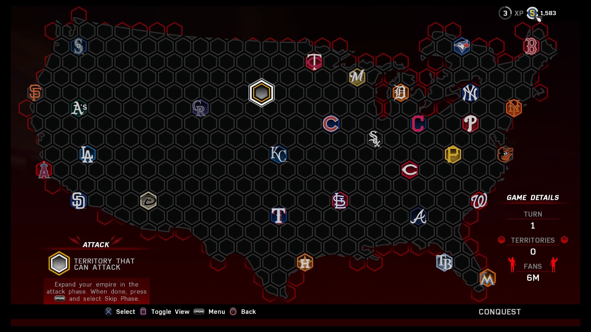 It's also worth noting in light of the growing importance of Diamond Dynasty - The Show's card-collecting mode. This year's version brings with it a single-player mode in Conquest - a mini-strategy game in which you "defend" your strongholds by playing games with your Diamond Dyansty team - but the real point of collecting these cards is playing against other people. Your mileage will vary depending on your connection, but the middling online puts a real damper on Diamond Dynasty and its attendant Battle Royale mode - a new feature where you draft 25 players and try to win as many games as possible with them.