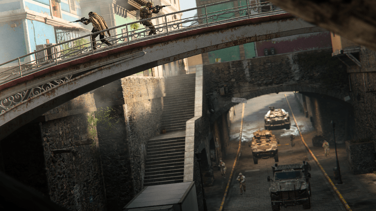 Third-person TDM matches – the overall feeling changes a lot once you can peek with the camera around corners and above obstacles – in Santa Seña are some of the most tense CoD experiences I can remember, as checking every trashed car and opening suddenly becomes the highest priority to stay on top of the scoreboard.