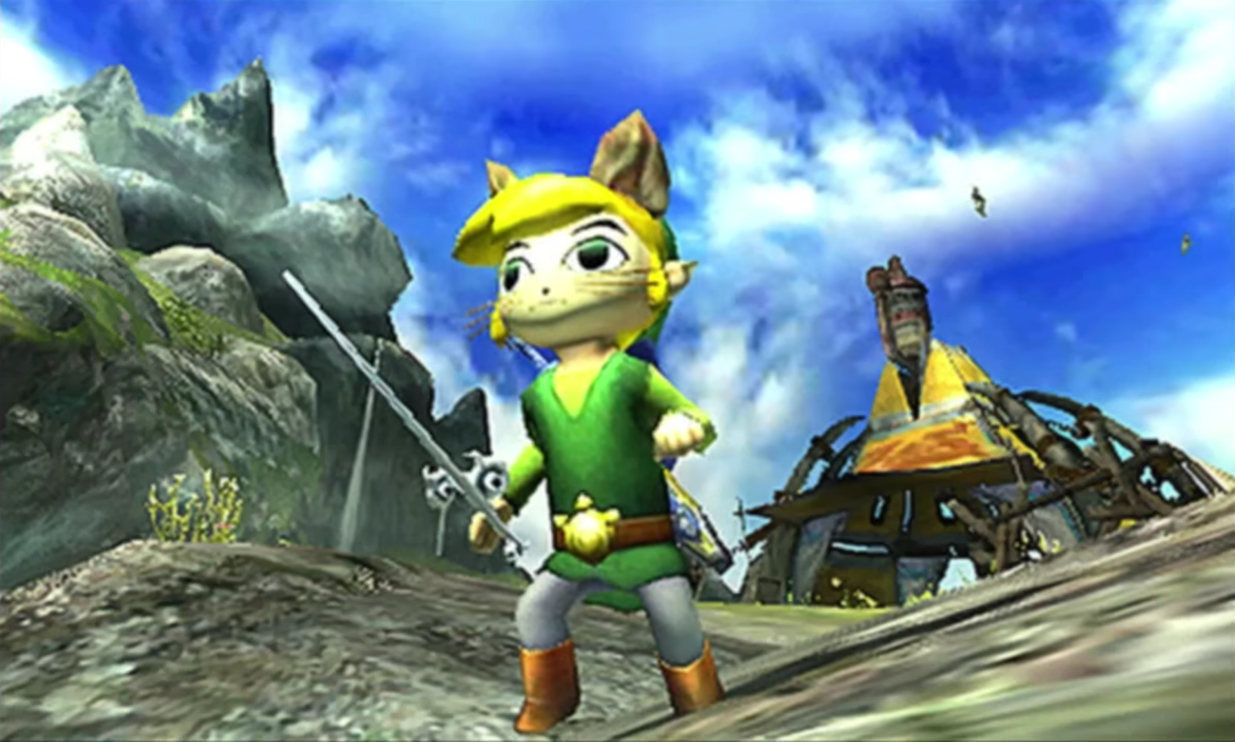 The Wind Waker content will be included as free DLC sometime after Monster Hunter Generations release date. On top of unlocking Link's mask and costume, Palico players will also get a Wind Waker themed baton. Sadly, while the Master Sword and shield are also included, they're purely decorative features that remain on Link's back. The good news is these items were already featured in Monster Hunter 4.