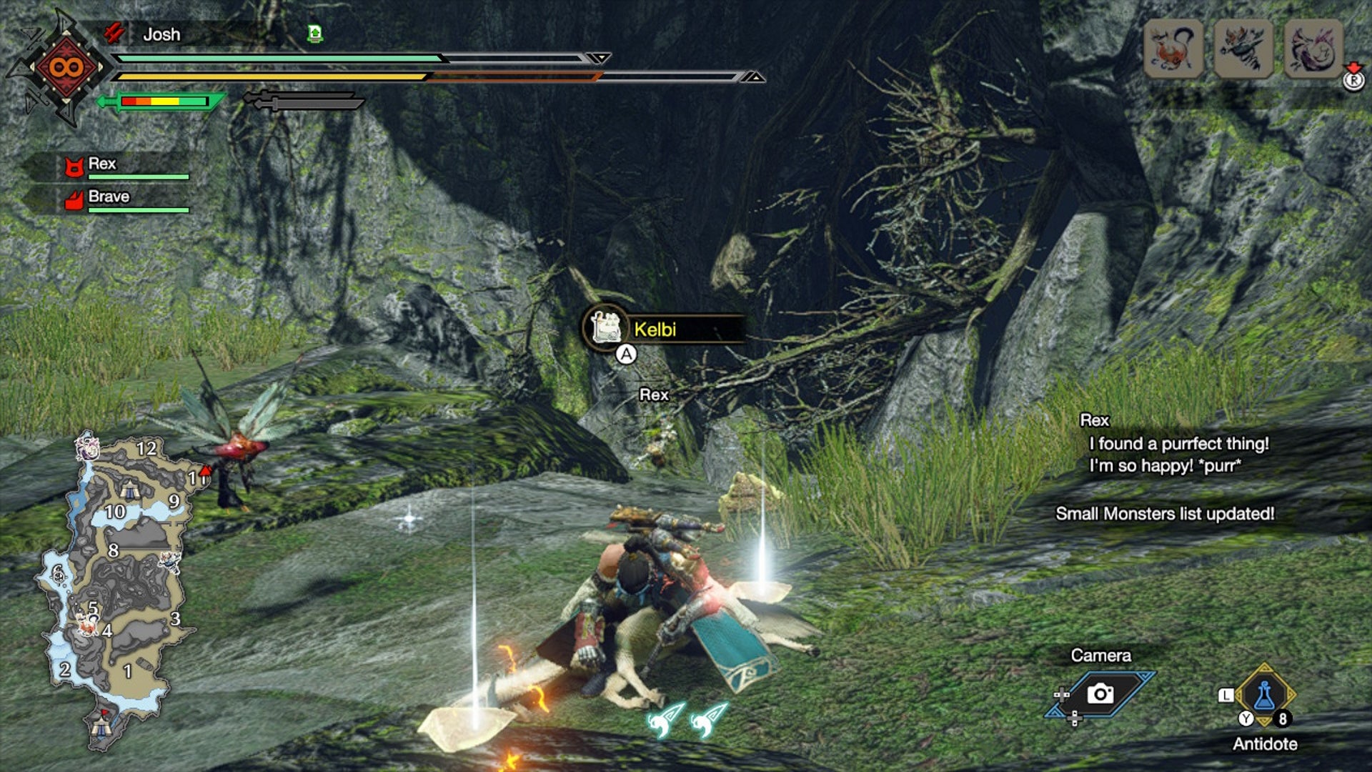Another safe bet for finding a Kelbi is in region 11, near the giant nest. We found a small herd of Kelbi there, and they don’t escape quite as easily up here. There’s also a set of Kelbi near region eight.